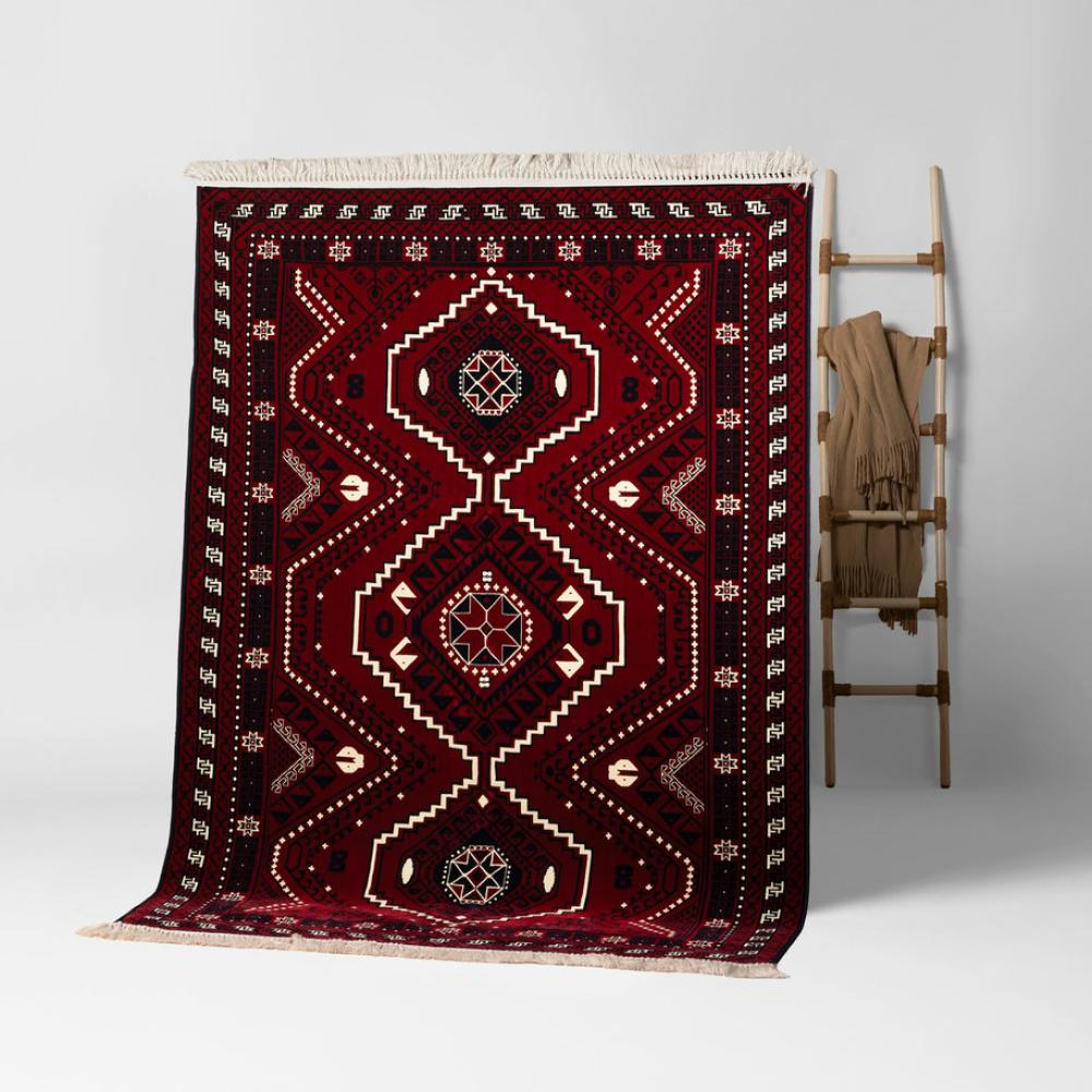 سجادة حمراء بتصميم شرقي تعكس الأناقة والفخامة، مصنوعة بعناية فائقة وجودة عالية لتلبي احتياجاتك بشكل مثالي. تتميز هذه السجادة بنعومة فائقة تجعلها لطيفة على القدمين ومريحة للجلوس عليها لفترات طويلة دون إزعاج.